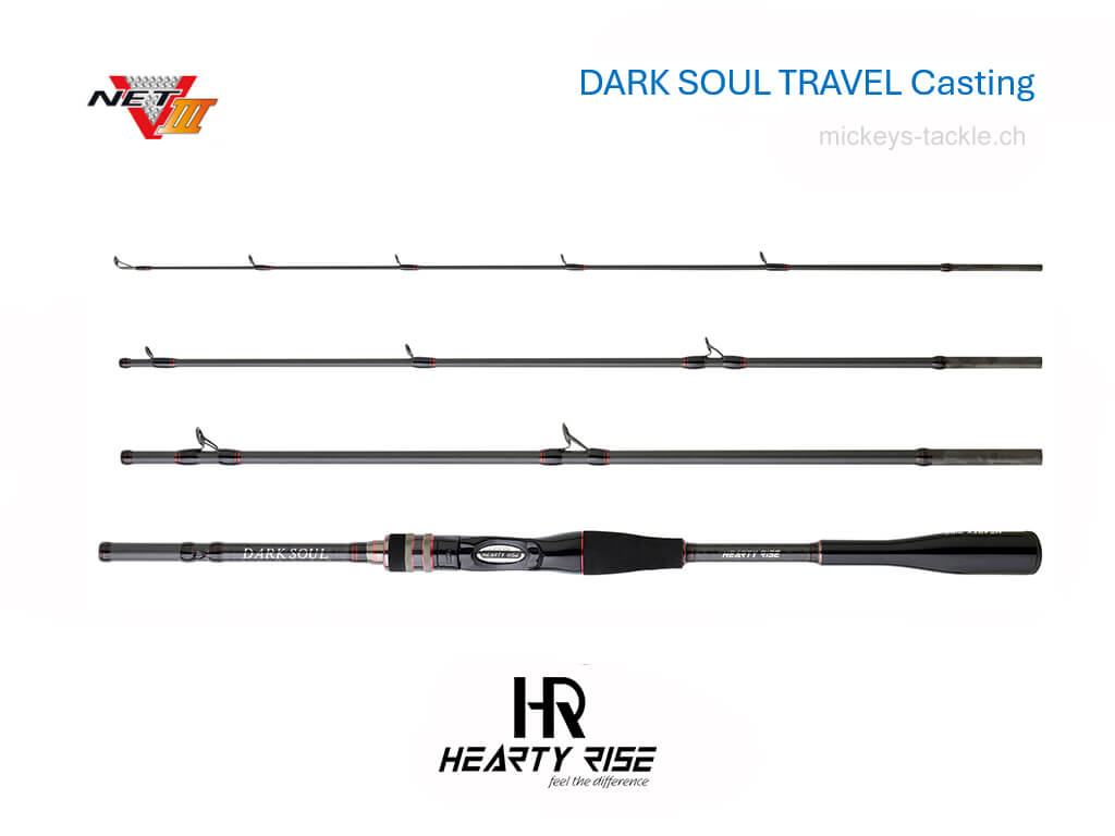 Mit der Dark Soul Travel Baitcasting Serie bringt Hearty Rise leistungsstarke Reiseruten auf den Markt, die speziell für maximale Performance bei minimalem Packmaß entwickelt wurden. Der hochwertige NET-V III Carbon Blank sorgt für eine perfekte Balance aus Sensibilität, Wurfweite und Kraftreserven.