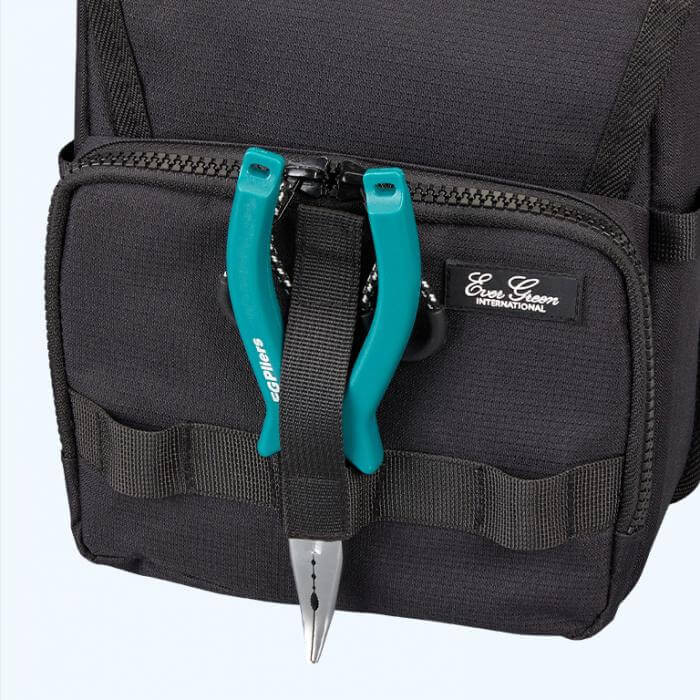 The outside and sides of the main body are equipped with belts and loops for attaching tools. Tools such as pliers, tweezers and line cutters can be attached at any position to suit the angler's style.