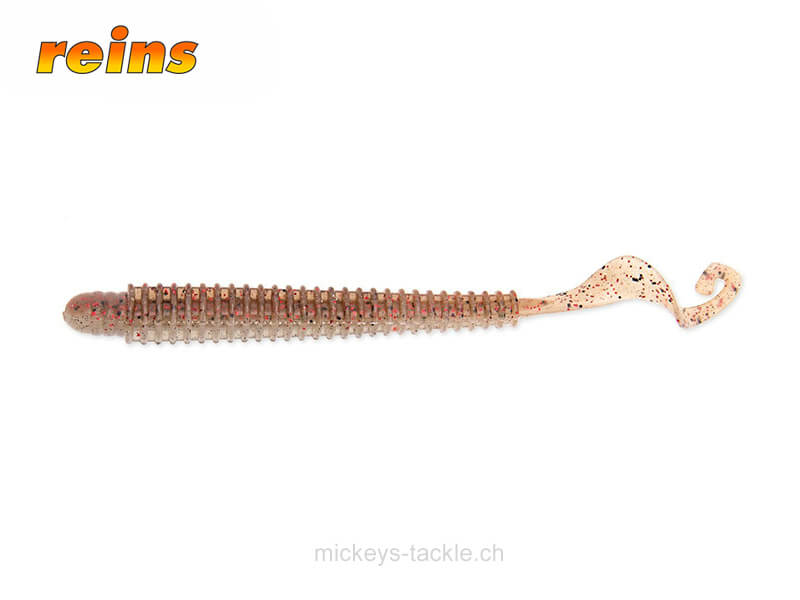 Die Reins G-Tail Saturn sind vielseitig einsetzbare kleine, gerippte Gummiwürmer mit einem G-förmigen Schwanz. Sie eignen sich für das Texas- oder Carolina-Rig, aber auch sehr gut als Trailer am Mono Spin Jig, Guard Spin Jig oder Drop Shot. Die G-Tail Saturn spielen schon bei sehr langsamer Führung lebhaft und können deshalb auch mit sehr leichten Gewichten gefischt werden. Die Gummimischung der reins Gummiköder ist gesalzen und mit Garnelen-Duft aromatisiert!