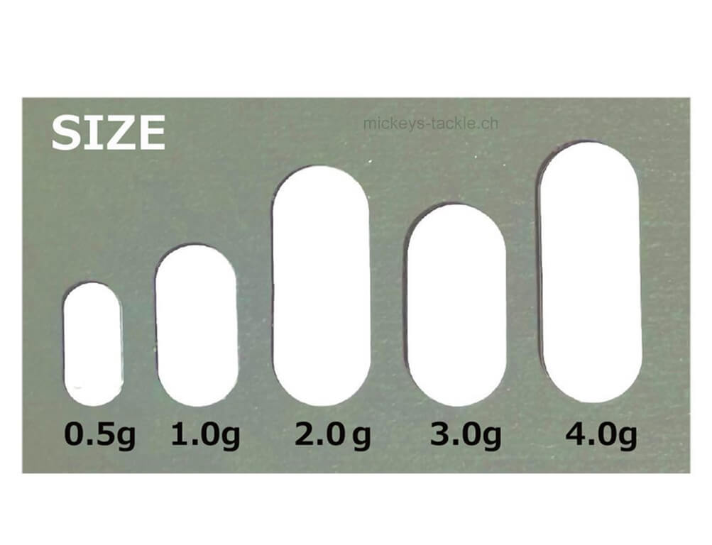 Die Zappu Board Weights eignen sich perfekt für die individuelle Gestaltung fast aller Harbaits und sind eine einfache Möglichkeit, die Aktion Ihres Köders zu verändern und seine Leistung zu verbessern. Die aus weichem und biegsamem Blei gefertigten Zappu Board Weights sind oval geschnitten und mit einer selbstklebenden Rückseite versehen, sodass sie leicht an jedem Köder angebracht werden können, wenn Sie zusätzliches Gewicht wünschen.