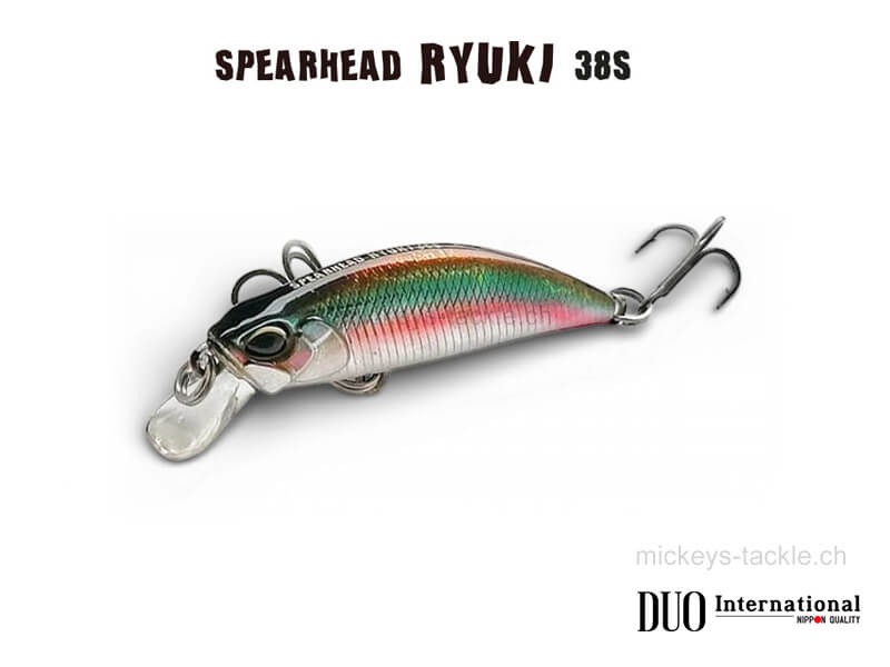Der DUO Spearhead Ryuki 38S ist der kleinste der Ryukis. Trotz nur 3,8 cm bringt dieser sinkende Mini-Hardbait aber beachtliche 2,8 g auf die Waage. Gewicht, dass ihm in Verbindung mit dem speziellen Design eine sehr stabile Flugbahn verleiht. Er lässt sich daher weit und präzise werfen. Perfekt also für alle Gewässer mit Forellen, egal ob kleiner Bach oder sogar ein See.