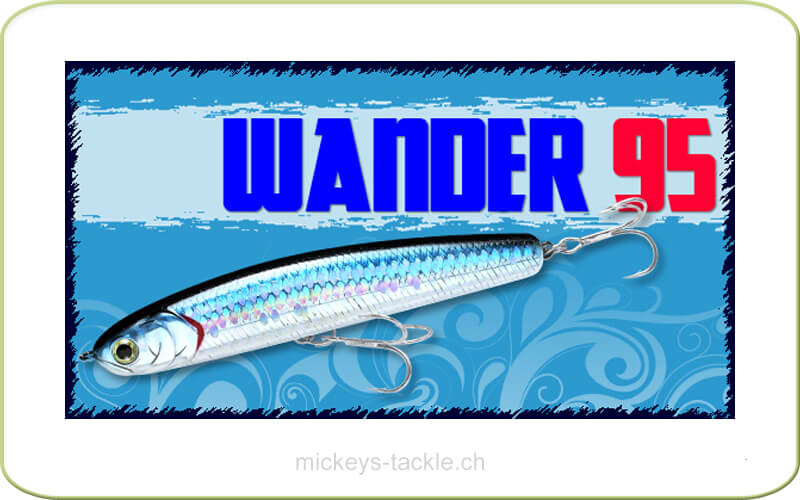 Il Wander 95 crea una distanza di lancio travolgente e ha un'azione di rotolamento naturale creata dal solo recupero ed è anche un'eccellente esca per trote di lago che imita perfettamente un pesce preda in preda al panico o ferito tirando, contraendo e masturbandosi. L'azione non è solo nascosta nel nuoto ma anche nel movimento di affondamento. L'azione di affondare mentre si scuote il corpo, chiamata "Wandering Fall", crea un'opportunità di morso cruciale.