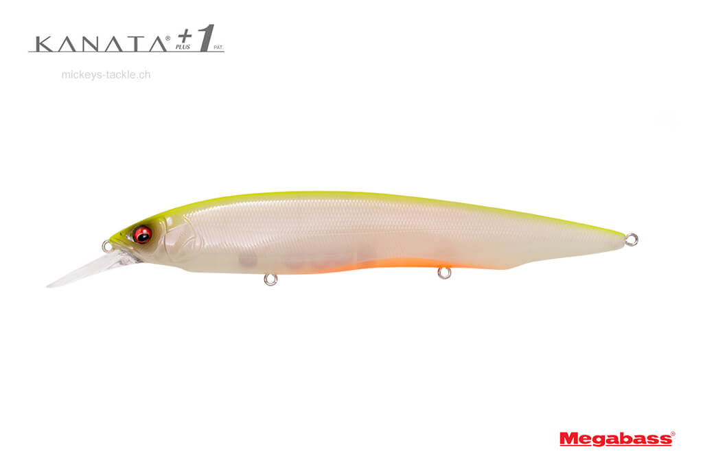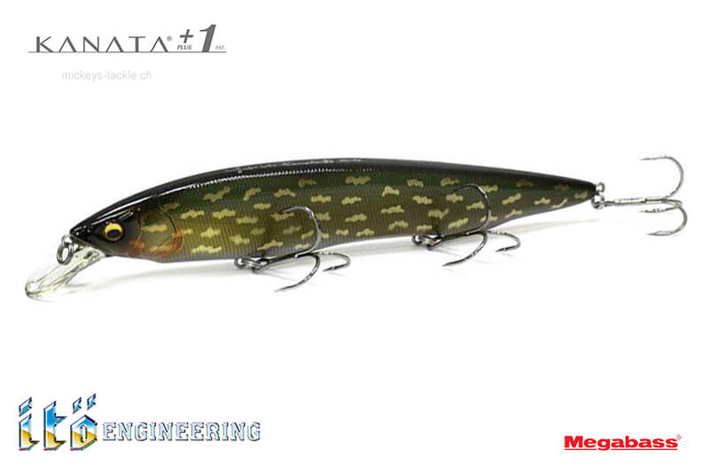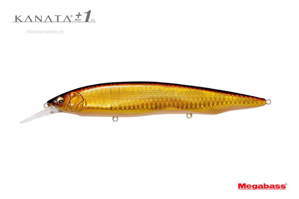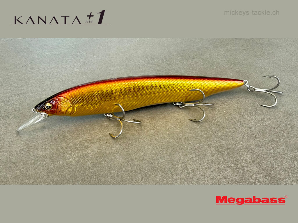KANATA+1 (Plus One) è un Jerkbait con una profondità massima di immersione di 3,2 m, 1 m più in profondità rispetto alla profondità di immersione del KANATA originale. Come l'originale, nonostante le sue grandi dimensioni (160 mm) e il peso di 1,1/8 once, il +1 ha una resistenza al recupero sorprendentemente leggera, consentendo ricerche ad alta velocità con canne di classe F5 (Medium Heavy).