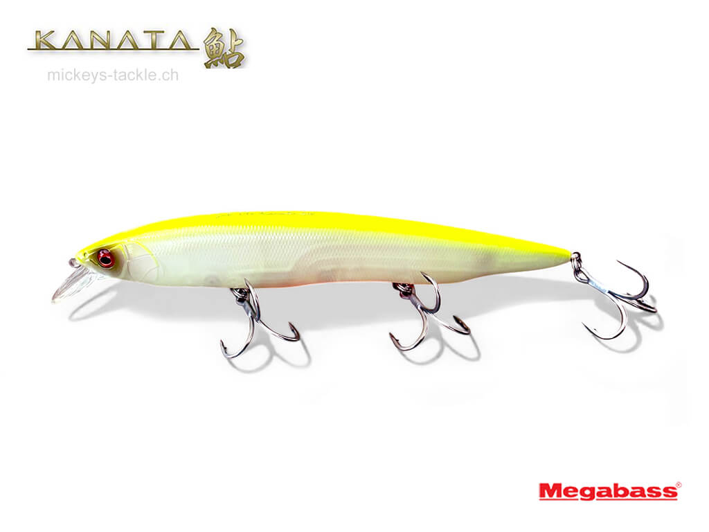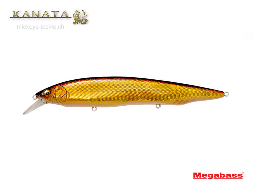 Il Kanata SW wobbler è un twitchbait - jerkbait prodotto specialmente per grandi pesci predatori da Megabass. Con un corpo affusolato e sottile, KANATA mantiene la resistenza al minimo. Questo permette un recupero veloce e pieno d'azione che non mette eccessivamente sotto sforzo i polsi e gli avambracci del pescatore, anche con un setup medio-pesante. La forma aerodinamica e il sistema speciale Megabass Original Tungsten Triple Oscillating Moving Balancer permettono lanci lunghi senza sforzo e di attaccare i pesci mostri intelligenti da lunghe distanze.